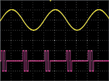 Reverse phase waveform with identical frequency,amplitude, and DC