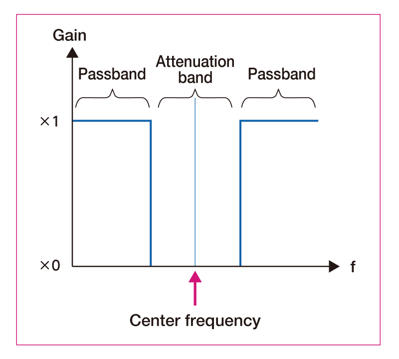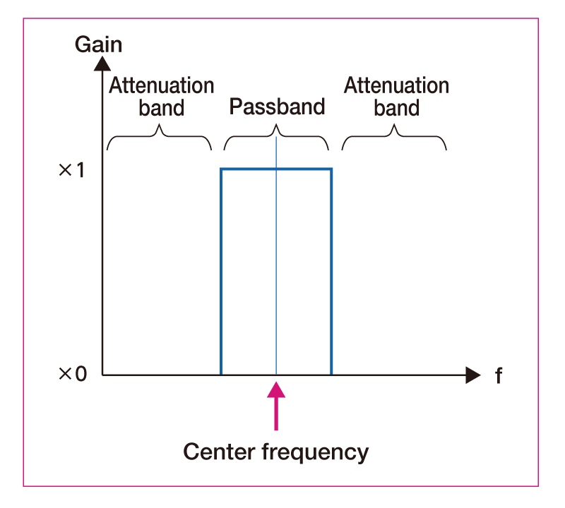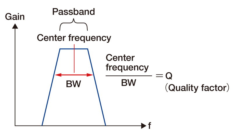 Q is a value indicating the sharpness of the characteristic in BPF or BEF. Divide the center frequency by the frequency bandwidth (BW).