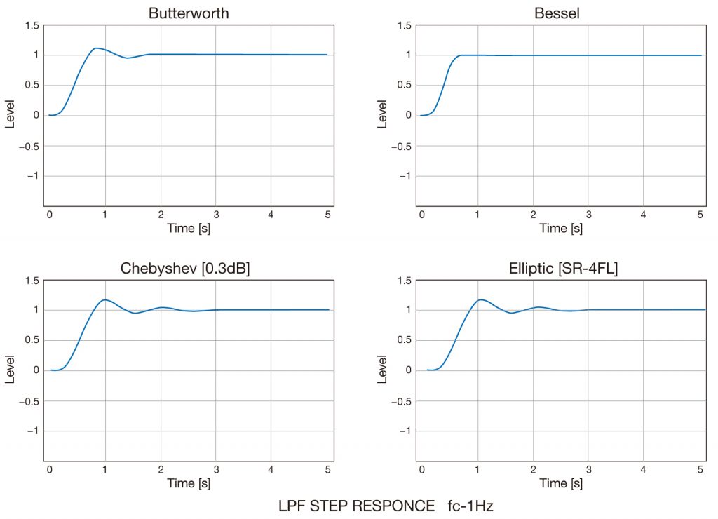 LPF, HPF, BPF, BEF characteristics can be selected. The LPF can be selected from phase linear and maximum flatness.