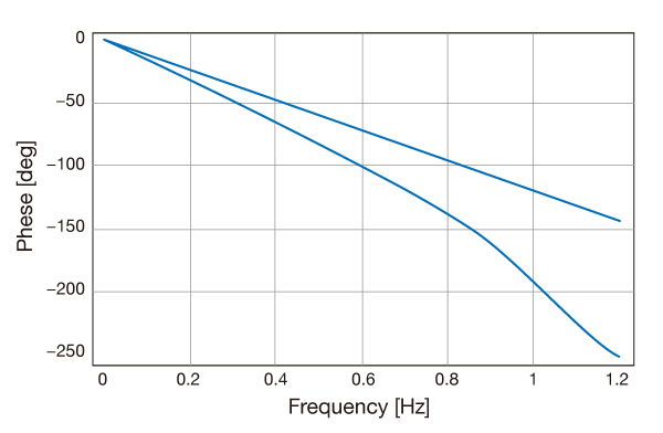 As a simulation of the filter characteristics with a linear phase change, a