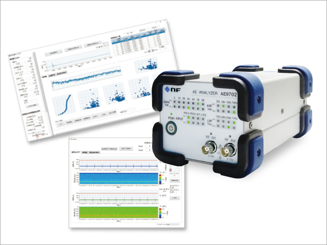 固体が変形または破壊する際に放出される、弾性波をAEセンサで検出・処理することで、破壊過程の評価が可能になり、生産設備のメンテナンスなどに活用できます。