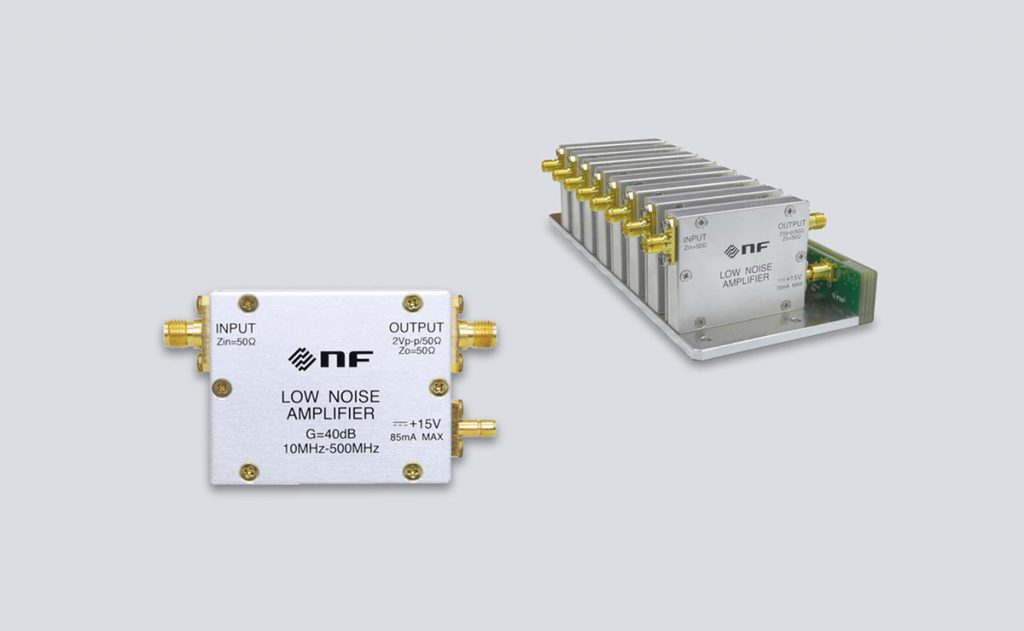 低雑音、高速リカバリータイム、保護機能装備、コンパクト設計の装置組込み向けアンプです。量子コンピュータやNMR/MRI 装置などに組込みアンプとして最適です。