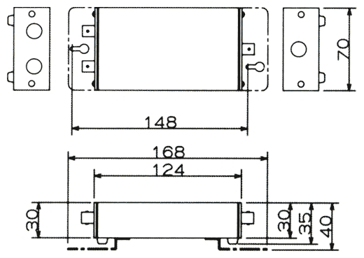 - 電源は当社のAE機器から信号ラインを通して供給。