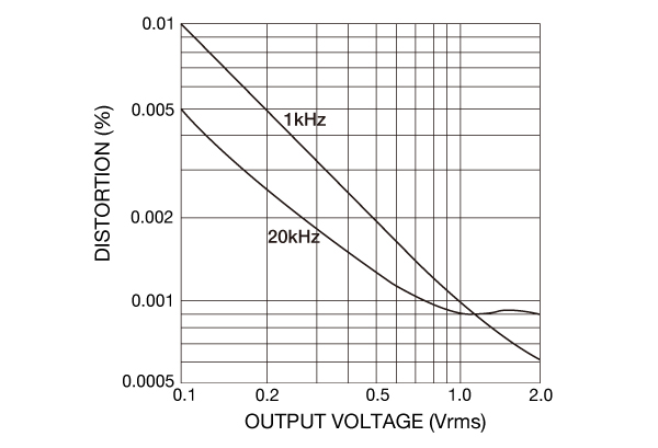 - S/N 110dB、チャネルセパレーション 110dB、ひずみ率 0.0006%で高級機にも対応