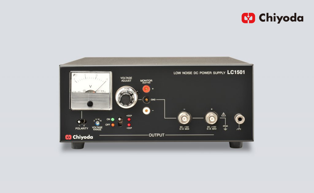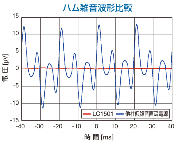 LC1501は、出力雑音電圧を極めて低いレベルに抑えた上、内部雑音の放射や外部雑音の混入防止のために2重シールド構造にするなど、耐ノイズ・低雑音を徹底的に追求した直流電源です。