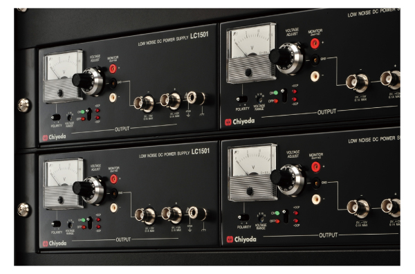 各種センサ用アンプの電源として、DCバイアス電源として、物性研究・デバイス開発、放射光施設など先端研究設備への組込みに。