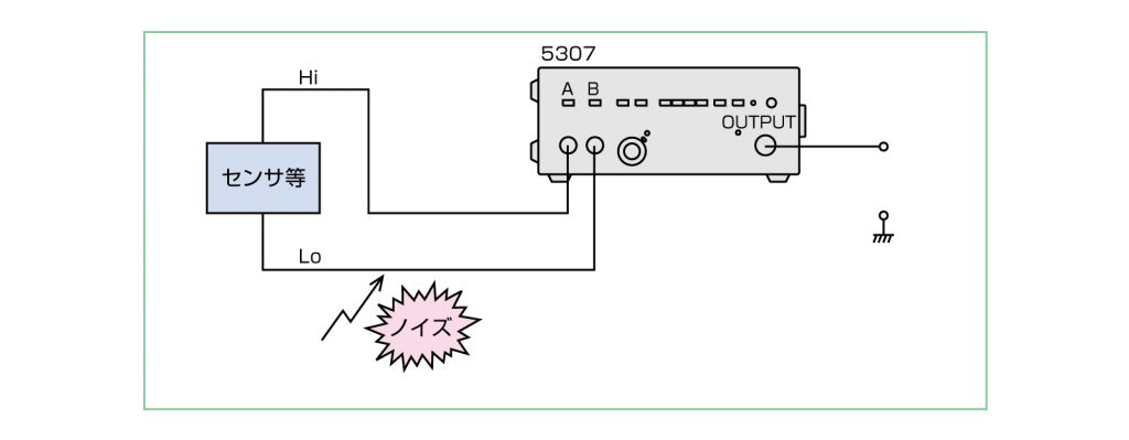 センサ等からの信号を5307のAとBに入力することにより、センサからの2つの出力信号に影響するノイズ信号を相殺することができます。