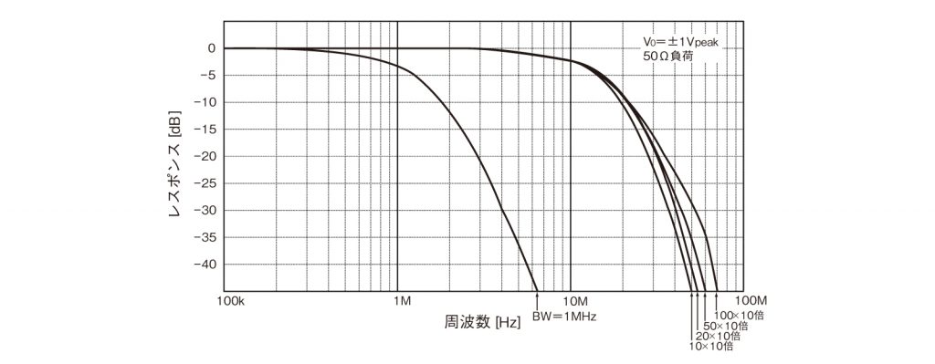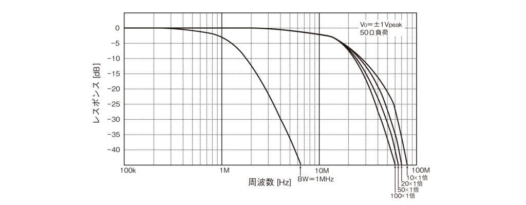 内蔵の帯域制限フィルタを利用すれば、より低雑音で使用できます。フィルタの特性は位相直線型のためパルス応答もすぐれています。