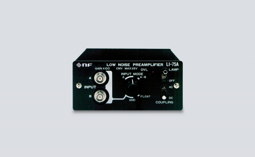 LI-75Aは、ロックインアンプの感度向上やコモンモードノイズ除去のために用いるプリアンプです。
