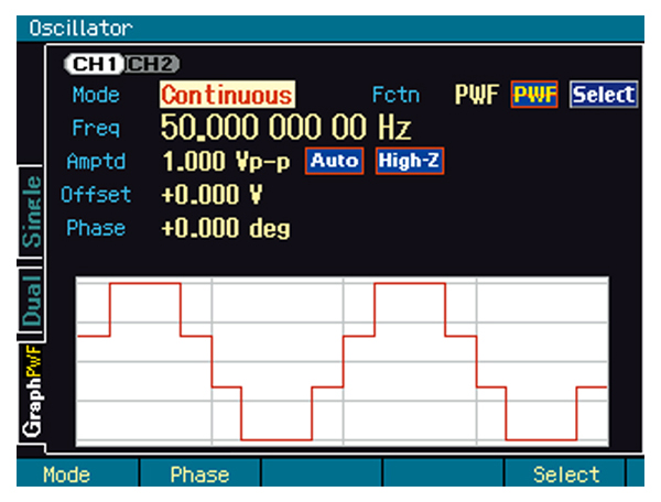 2チャネルモデル WF1974は、2チャネル独立した設定のほか、2相, 周波数差一定、差動など、2チャネル連動した設定が可能です。
