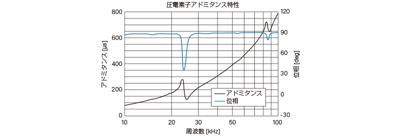 圧電素子をアクチュエータとして使用する場合は、共振特性の測定が重要です。