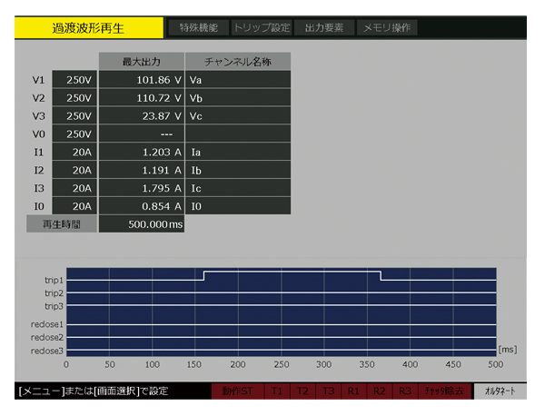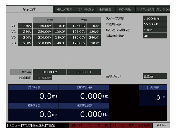 振幅・位相・周波数の高確度な出力により、計測器を使わなくても、保護リレーの正確な動作値・復帰値を得ることができます。