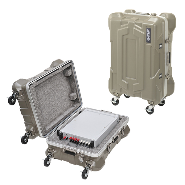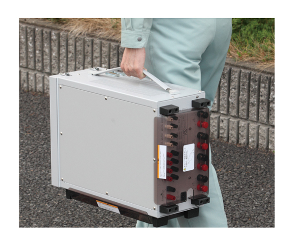 これまで、複数の機種を組み合わせていた電圧4要素・電流4要素の試験を1台で可能にしました。サイズは幅350mm× 高さ200mm× 奥行450mm(従来機種の1/5*)、質量は一人で持ち運びできる15kg(従来機種の1/4*)で、大幅な小型化と軽量化を実現しています。