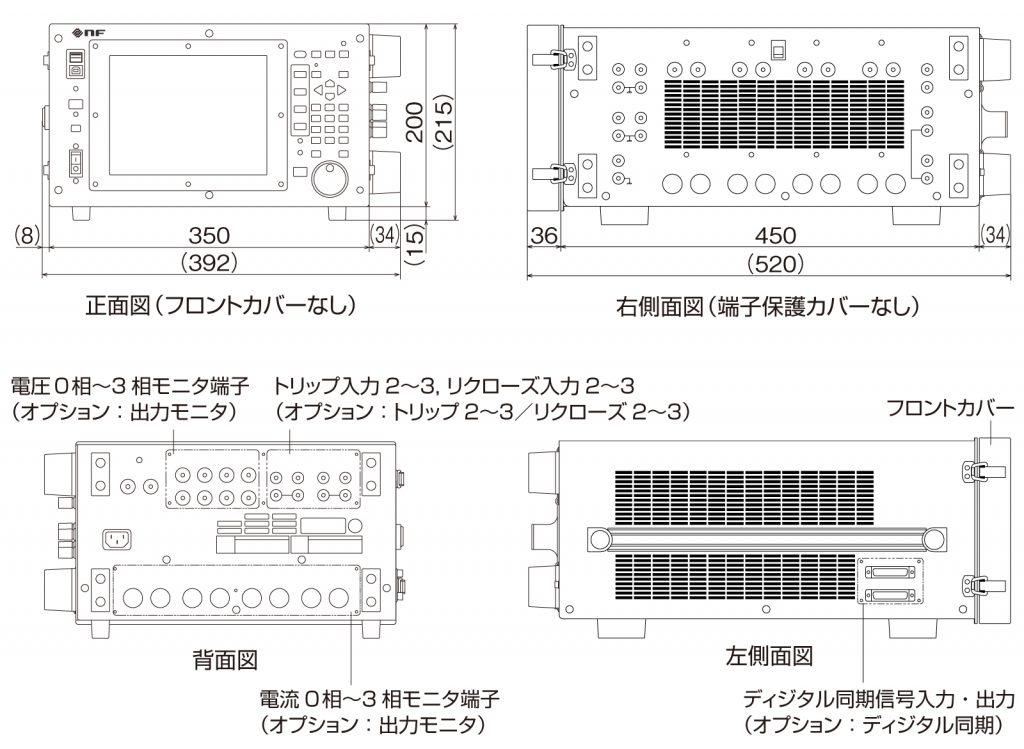 - 電圧4相(最大250V)・電流4相(最大20A) 各相同時連続出力、出力は相毎に絶縁