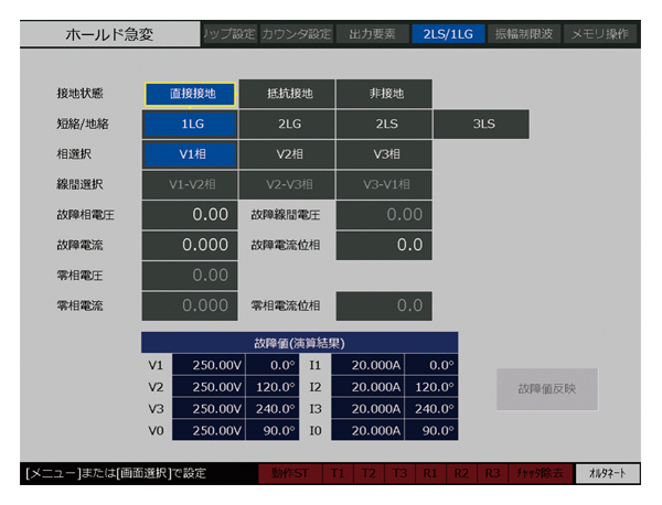 - 急変動作モード:動作シーケンス、故障方向、三相出力、0 相動作
