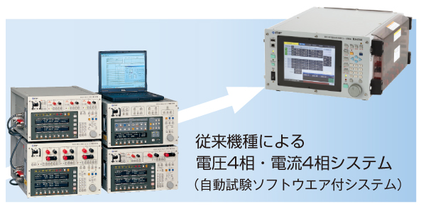 これまで、複数の機種を組み合わせていた電圧4要素・ 電流4要素の試験を1筐体で実現しました。