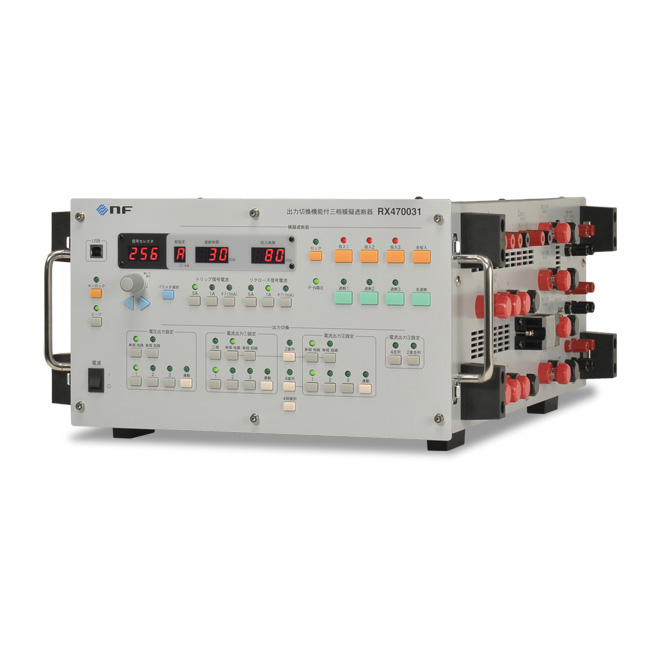 - 総合試験で模擬遮断器が必要な場合は、三相模擬遮断器 RX470031、保護リレー試験ソフトウェア RX04701等を組み合わせてご使用ください。