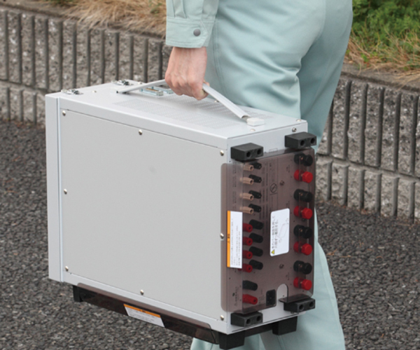 これまで、複数の機種を組み合わせていた電圧4要素・電流4要素の試験を1台で可能にしました。サイズは幅350mm×高さ200mm×奥行450mm、質量は一人で持ち運びできる15kgで、小型化と軽量化を実現しています。