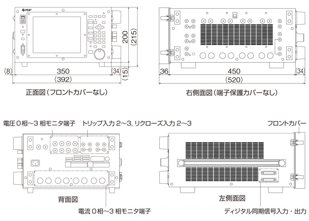 相あたり最大20A(10V)、4相並列で80A(10V)、2相直列で20A(20V)を2相、4相直列で20A(40V)の電流を出力できるので、旧式の87リレー(比率差動継電器)や51リレー(過電流継電器)の試験を行うことも可能です。