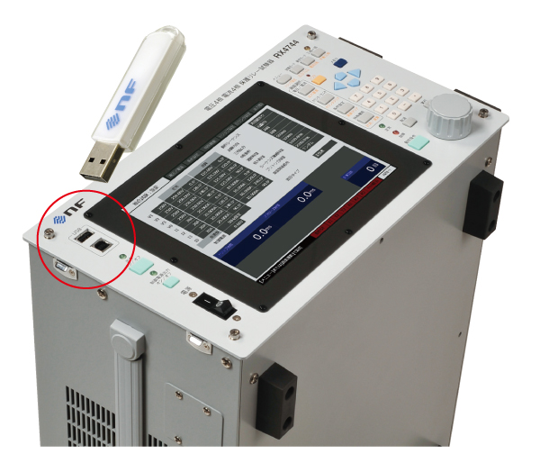 試験設定および試験結果はUSBメモリに保存可能です。