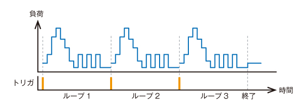256個のメモリに、16ステップで1プログラム、最大16プログラムまで負荷条件を設定できます。16プログラムを連続動作させることも可能です。