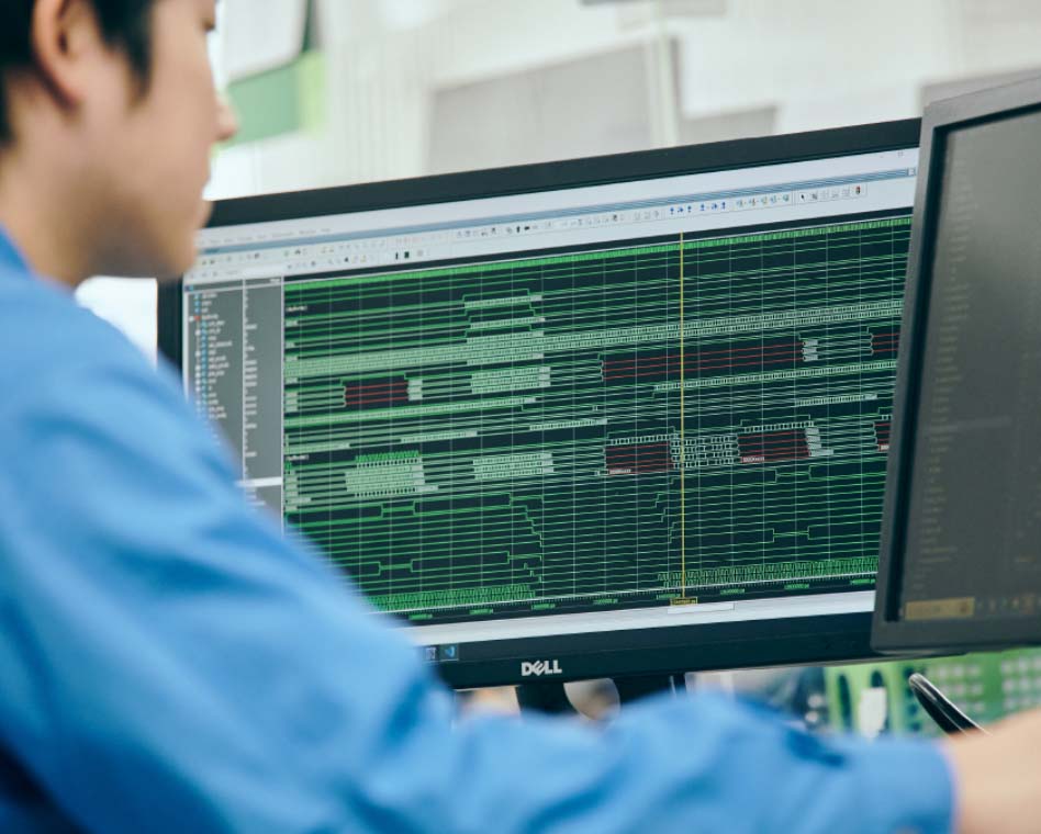 また、開発プロジェクトの多くは、他社を圧倒する高性能・高機能の追求が求められるもの。こうした中で若い社員は、先輩について補助的・部分的な工程からスタートし、指導を受けながら開発を進め、徐々に大規模な設計を任されていきます。設計以前に学術的な理論を学ぶことが必要な場面も多く、深く掘り下げられた設計・開発スキルを身につけていきます。