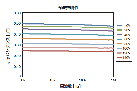 積層セラミックコンデンサは、電圧値や周波数帯域により静電容量が変化するため、実際に使用される条件で静電容量を測定し、最適な容量を確認することが重要です。