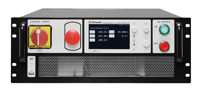 - 海外需要に対応するため、仕向地の出力電圧や相に変換した評価試験