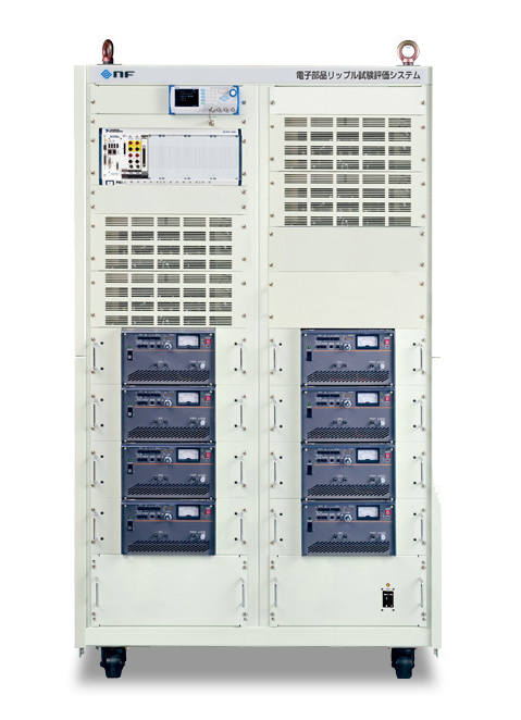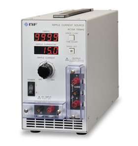 リップル電流試験器は、試験対象物にDCバイアスを印加して、正弦波のリップル電流を重畳することにより、コンデンサやインダクタの信頼性を試験する装置です。