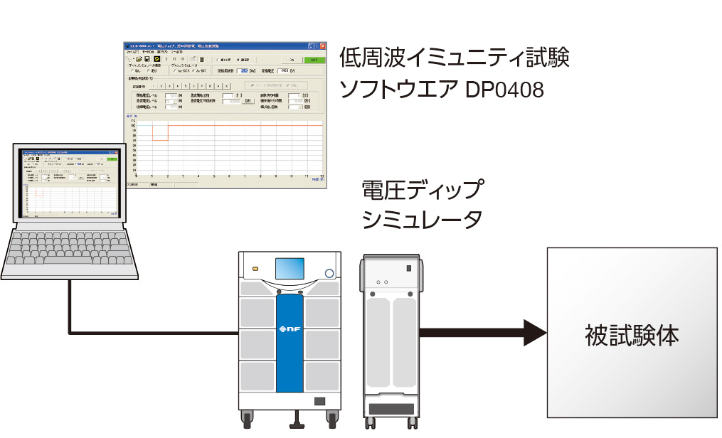 - IEC規格試験専用ソフトウェア、電圧ディップシミュレータ、リファレンスインピーダンスネットワーク、信号発生器などを用意