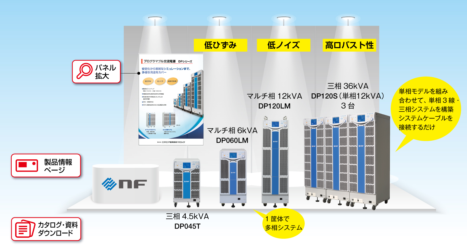 DPシリーズの安定した出力性能をそのままに、複数台接続による容量拡張と多相化に対応します。