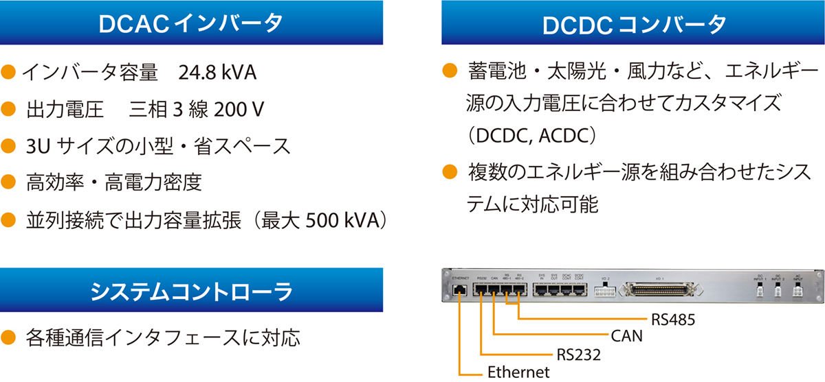 - 最大三相144kVAシステム構成が可能で、大型機器にも対応