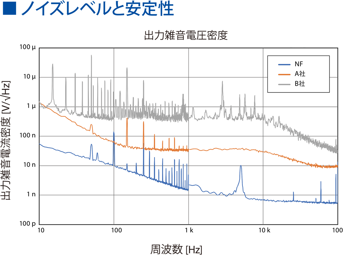- 出力雑音電圧: 10μVrms(帯域幅 10Hz ~ 20MHz)