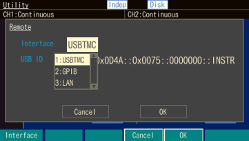 - 設定画面で、インタフェース「GPIB」が選択されていること。