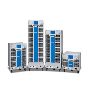 交流電源では、アナログ信号を2値信号に変換した後スイッチングアンプで増幅し、出力ローパスフィルタでアナログ信号に変換してから出力としている。2値信号に変換するにはPWM(パルス幅変調)またはPDM(パルス密度変調)などを用い、アンプ部のスイッチング素子にはMOSFETやIGBTなどを用いている。