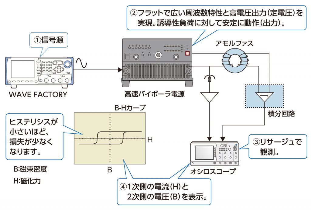- フェライト、アモルファスのB-Hカーブ測定用電源