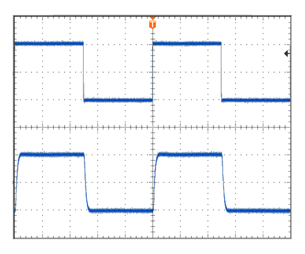 このローパスフィルタは、パルスの立ち上がりを鈍らせる作用をします。(図A) 一般的な広帯域の増幅器は、出力インピーダンスが50Ω (ないしはそれ以上) なので、この作用がより顕著になります。