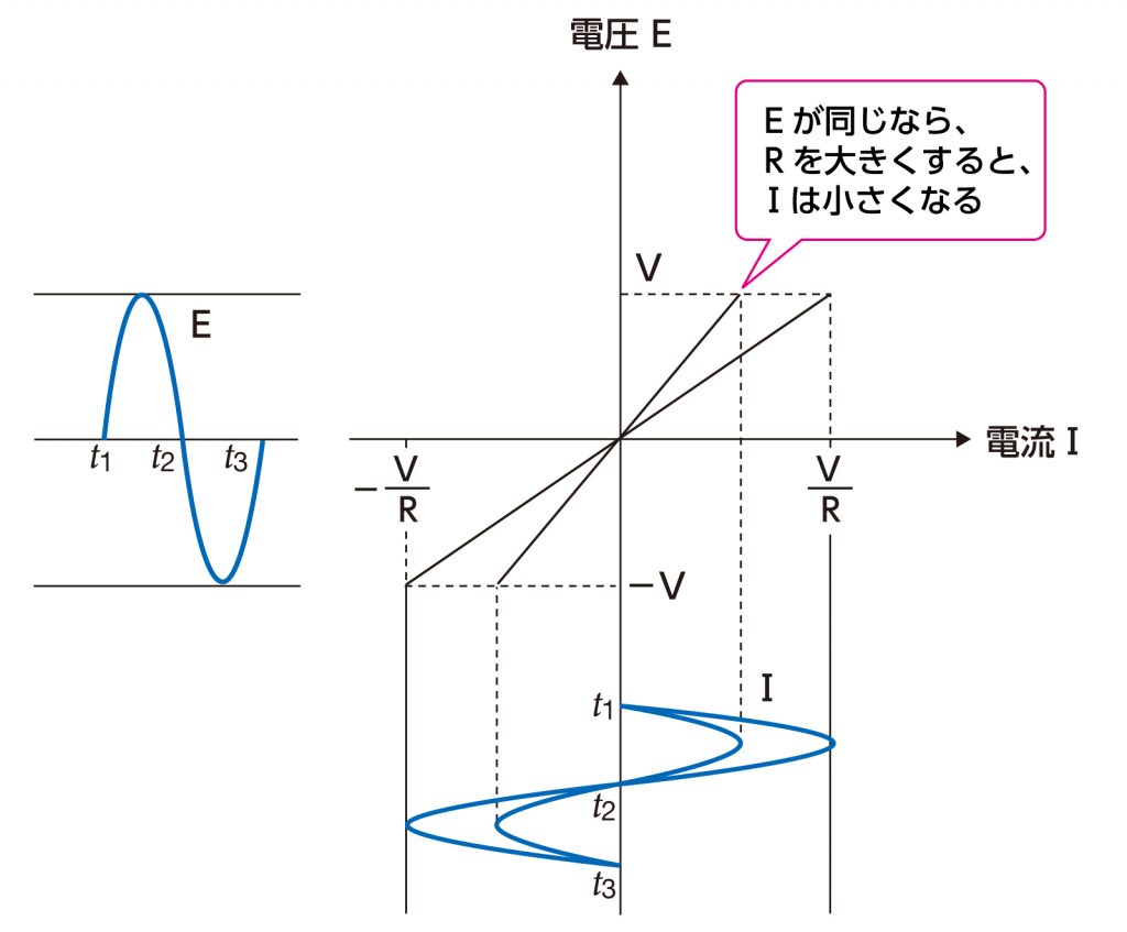 負荷に電圧を印加したとき、流れる電流はその電圧や負荷のインピーダンスに依存します。
